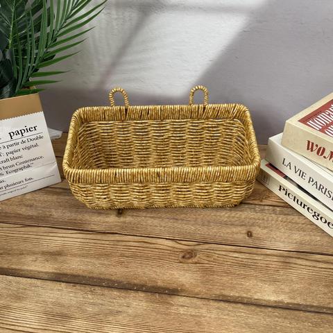 Customizable Rattan Handheld Basket Plastic Woven Flower Basket Iron Vintage Pastoral Design Storage Baskets