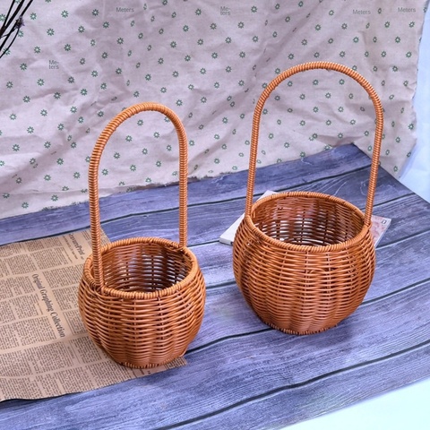 Tùy Chỉnh Mây Cầm Tay Giỏ Nhựa Dệt Giỏ Hoa Sắt Cổ Điển Mục Vụ Thiết Kế Lưu Trữ Giỏ